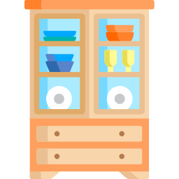 Το ντουλάπι στην κουζίνα είναι γεμάτο με πιάτα.