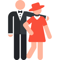 Тя носи оранжева рокля.
